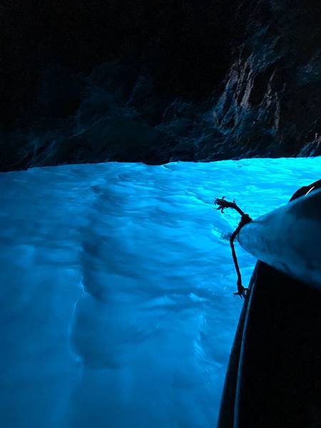 船夫鐵鍊一拉,就帶領我們進入這神秘的洞穴,映入眼簾的就是不可思議的藍,就像帶有螢光一樣,從海底照射出來,該不會是因為在海底放LED燈吧!說說的啦~別當真。真的跟平常看到的大海藍是完全不同的,非常的獨一無二。這個世界聞名的藍洞,還是要親眼所見才能體驗到那如夢似幻的藍阿!