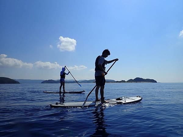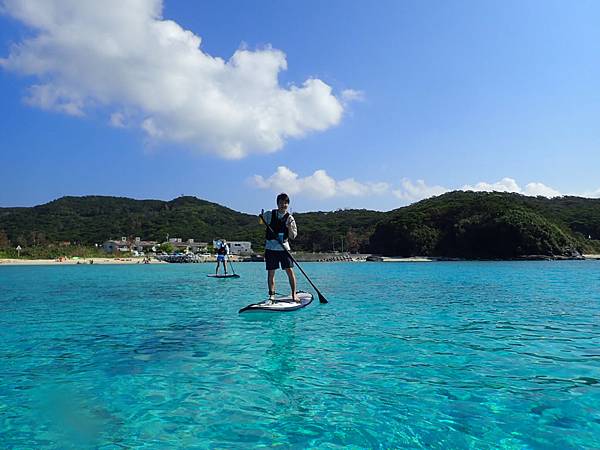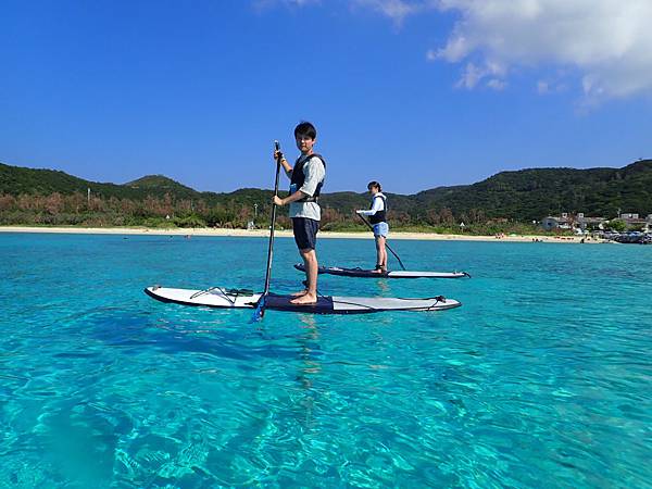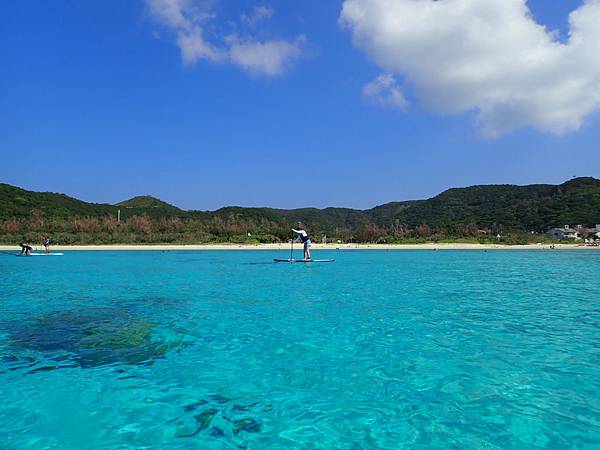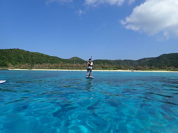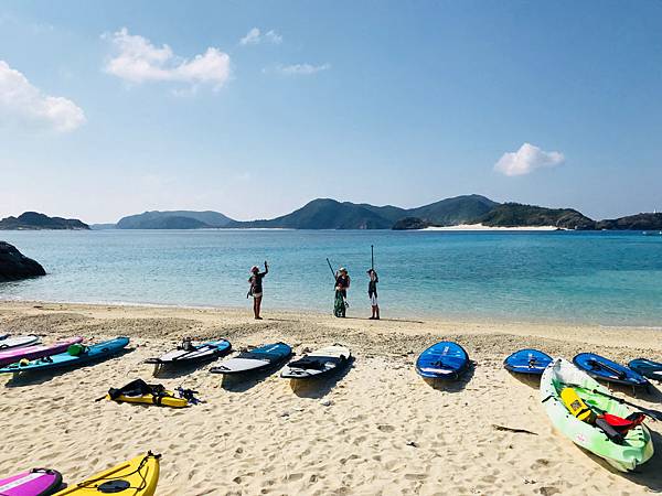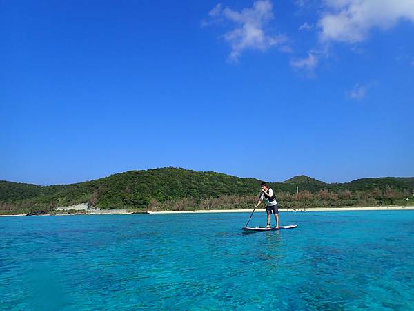 這個海灘不會太商業化,沒有遮陽傘,大部分的人都是來參加水上活動的,因為對面有兩座無人島(嘉比島、安慶名敷島),不管是獨木舟或是SUP都會划到對面,甚至在對面吃午餐,放空的看著美麗的大海,哇!這種生活真的很棒!!