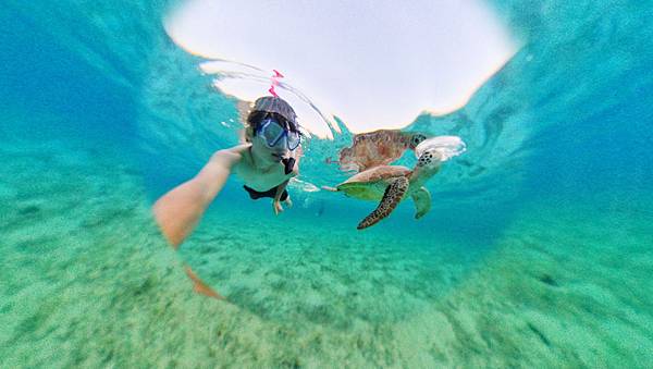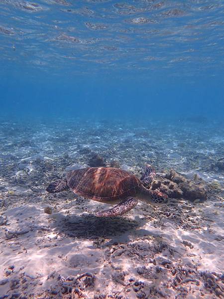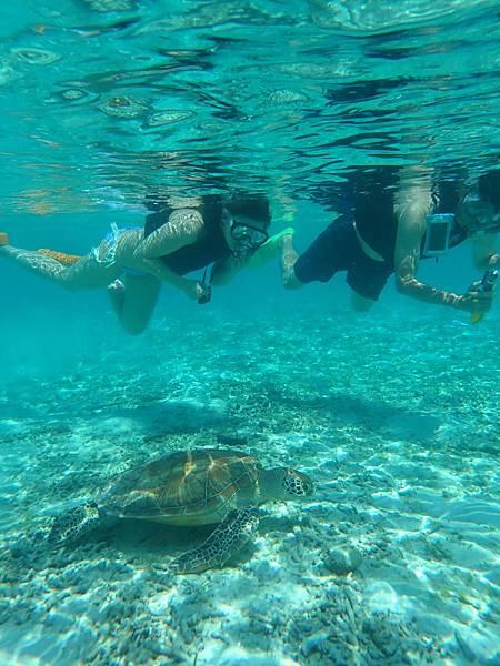 結束後去吃了午餐,然後又吃了下午茶,天氣實在太熱稍微休息一下,下午四點我又跳到海裡跟海龜游泳了,這次還讓我遇到三隻海龜呢!