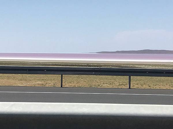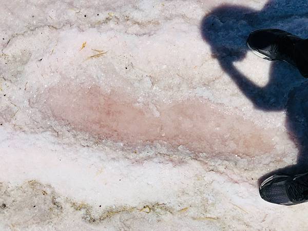 我們第一次停的點是地圖標記的位置,而不是休息站那邊,遠看非常的粉紅,心情無比興奮迫不及待要衝下去,到了之後發現風有點大,湖就有產生波紋,無法拍出天空之鏡的照片。