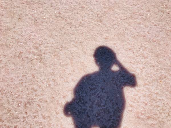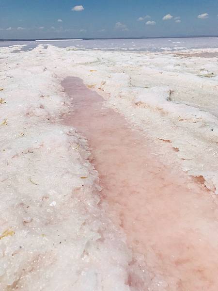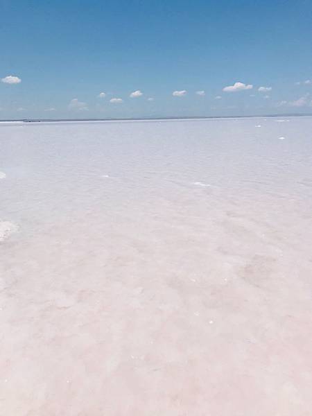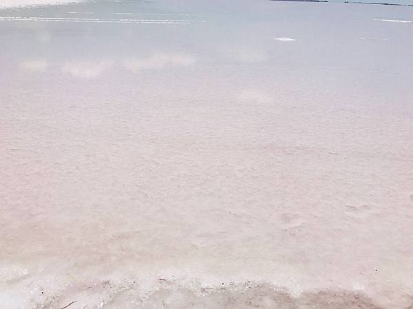 經歷了千辛萬苦,終於讓我們抵達岸邊,喔我的天~~風平浪靜水源充足比剛剛更粉紅,也能清楚的看到倒影了呢!!真的是無敵夢幻,這個只有自己開車來才能這樣悠閒地拍照。