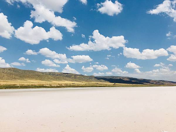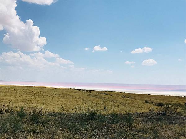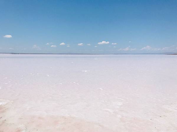 等小夫妻拿到車之後我們就直接出發,其實鹽湖離GÖREME挺遠的,大概要2個小時,距離有190公里左右,但去了你會發現一切都是值得的,另外鹽湖非常的大,我們在看地圖的時候,其實找不到到底該停在哪邊下去湖邊,因為公路離湖邊有段距離,之後才知道原來很多巴士都會停在上面的休息站,但回台灣後看網友分享照片,有發現那邊的照片都沒什麼水,就是一片白白的很像棉堡,或是不夠粉紅。