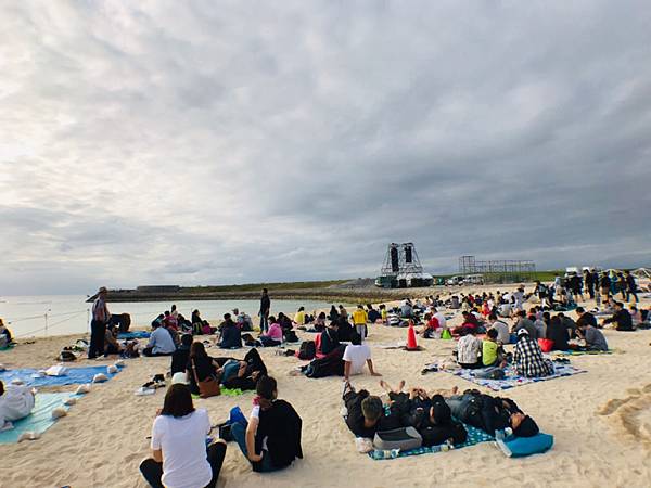 越靠近放煙火的時間會有人開始佔據剩下的小小沙灘空間,