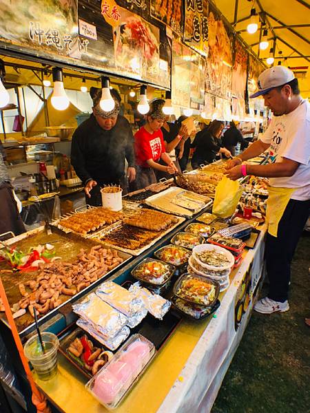 就看你想吃什麼就買什麼吧!我們當天買了雞肉串、炒麵、玉米,