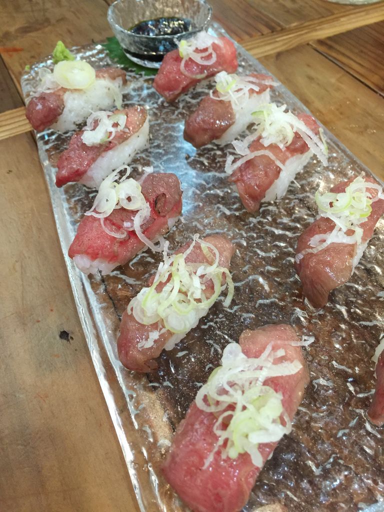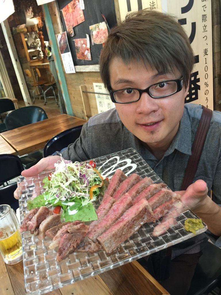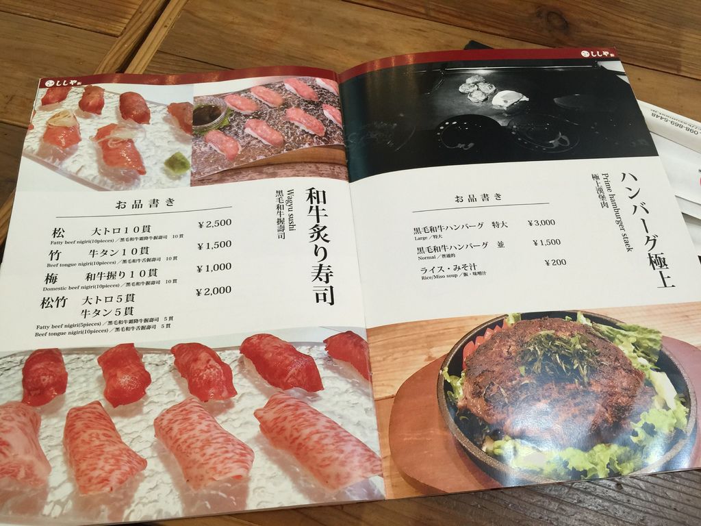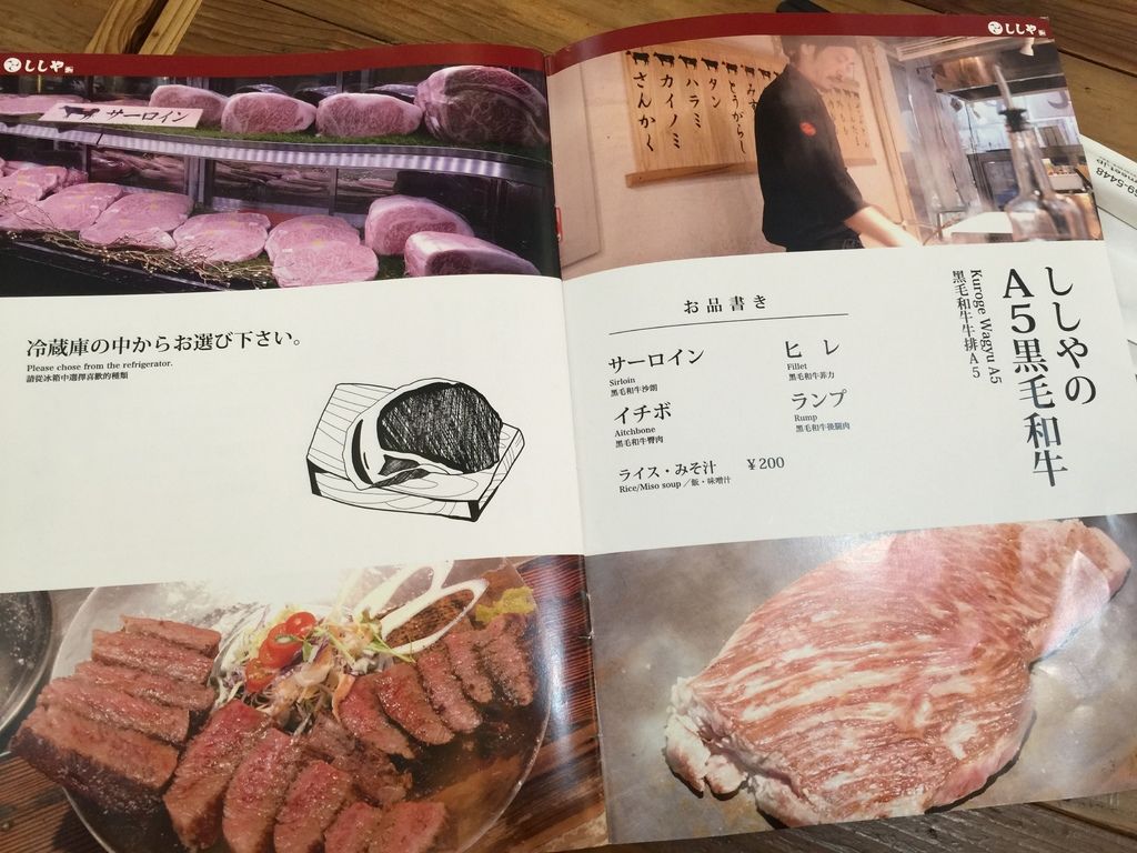 菜單其實品項不會太多,而且都有中文菜單不用擔心,來這就是要吃牛排,不用考慮了。因為是兩年前吃的,所以菜單應該有變化了,但其實還是以牛排為主,之後有拍到新菜單再更新。基本上老闆會請你從櫥窗挑一塊肉,價格就是1萬多~2萬多都有,不要問我為什麼那麼貴,因為和牛是高檔食材,就是那麼貴,吃米要知道米價。像我挑的1萬多的肋眼就是直接煎牛排給你吃,老闆一直叫我選2萬多的肉,說可以直接拿一部分去做握壽司還有炒麵,但我不知道這樣還要不要另外加上壽司跟炒麵的錢,這次沒拍到帳單(不是我付錢的),如果有知道的網友再跟我說一下,感謝。