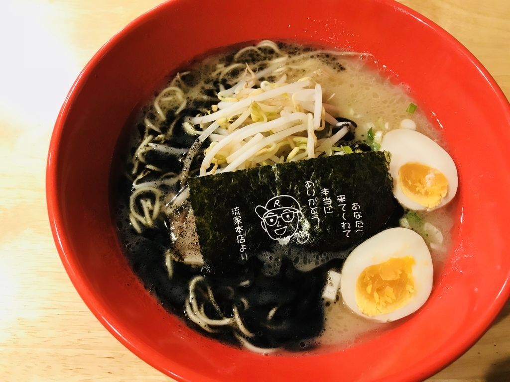 沖繩|美食|國際通 琉家拉麵 本店 招牌黑漆漆的琉焦蒜豬骨麵