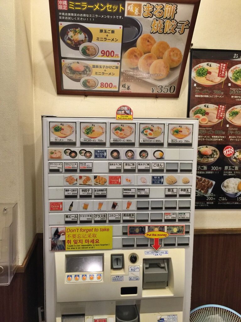 翻出了我2年前去吃的照片,發現售票機不同,價格也跟現在的不一樣。現在店家的外觀也都有重新裝潢過了呢!不過那些都不重要,我覺得只要拉麵口味沒有變就好,還沒試過的下次去沖繩可以吃吃看喔。