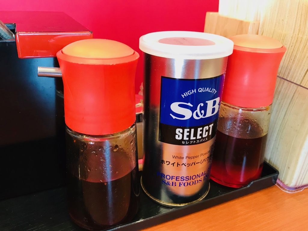 我吃拉麵的時候,大概吃到一半我會加一些白胡椒,前面先吃原味。加了白胡椒真的很香很好吃,如果你有在做菜的人,很推薦買這罐S&B的純白胡椒粉,那香氣跟台灣的就是不太一樣。