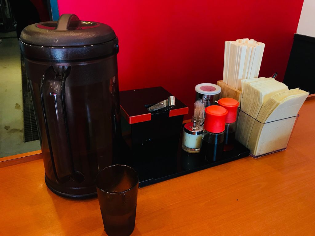 桌上會有水、調味料、酸菜、餐具...等可以自己拿。