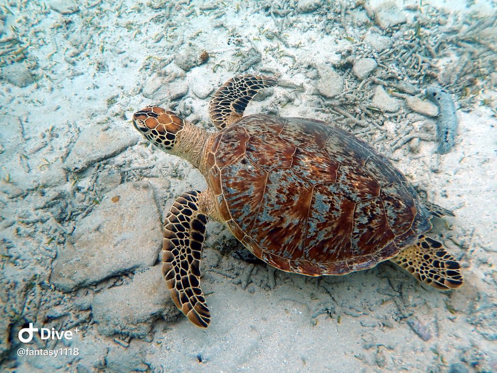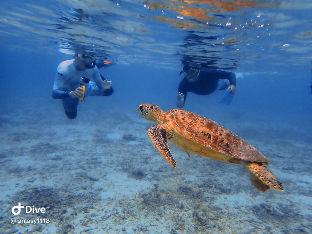 划一划在靠近岸邊的地方非常容易看到海龜喔!阿真海灘的海龜也都不怕人的。