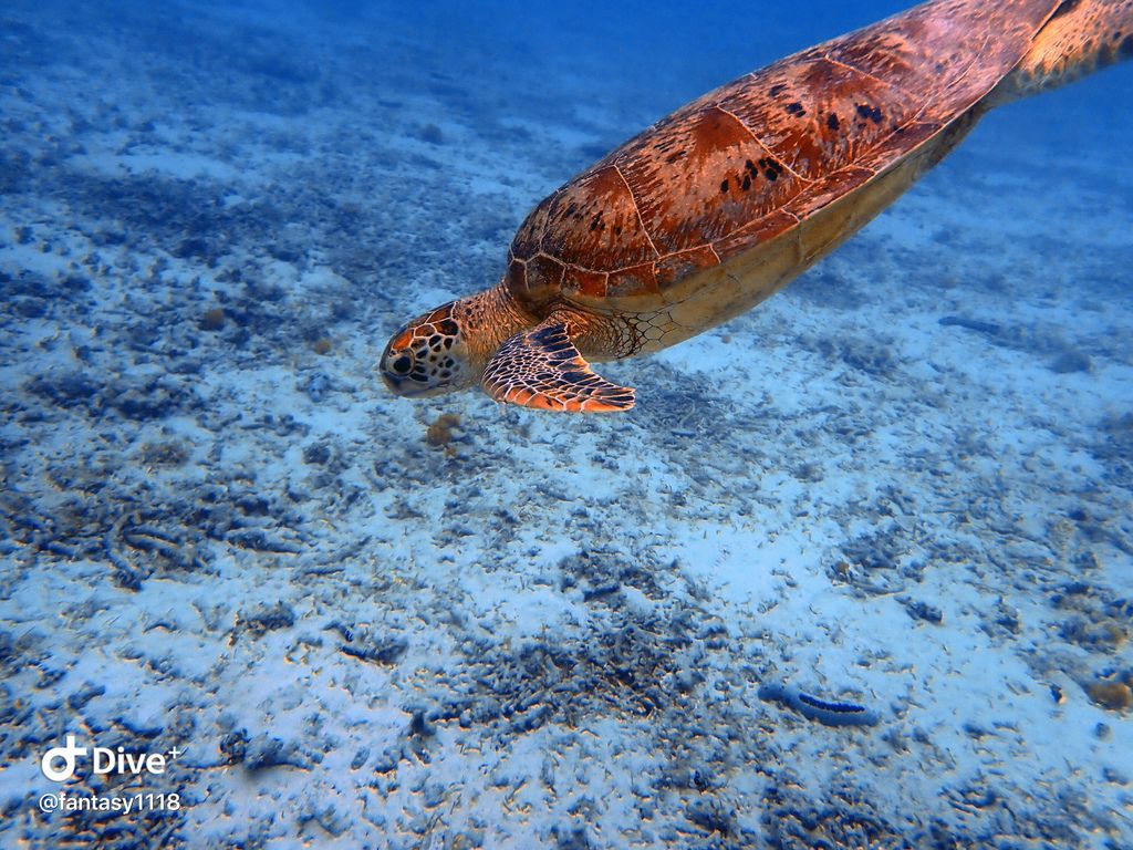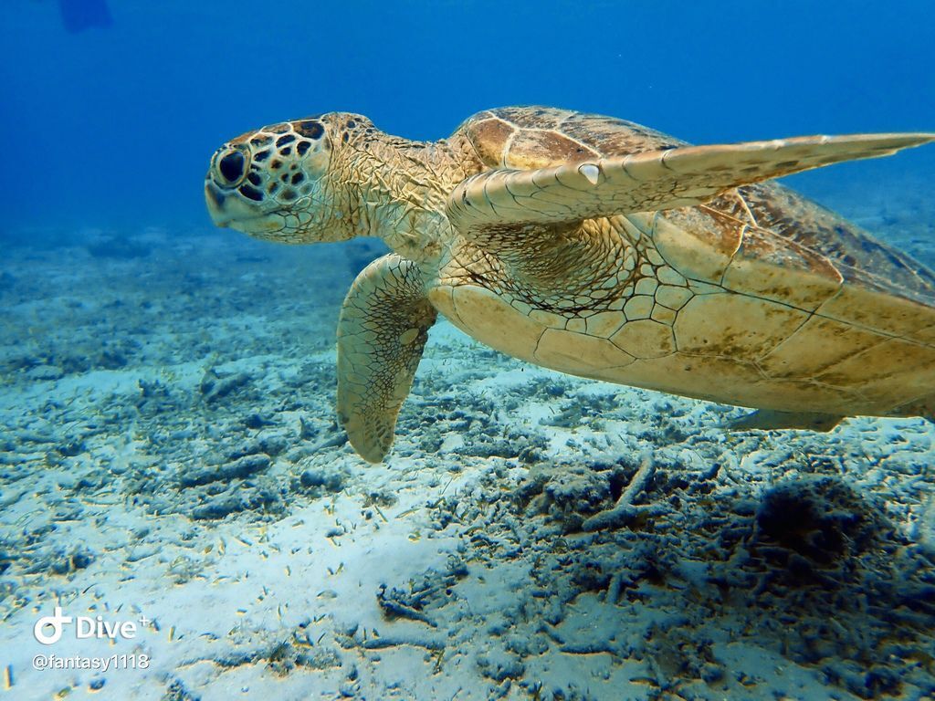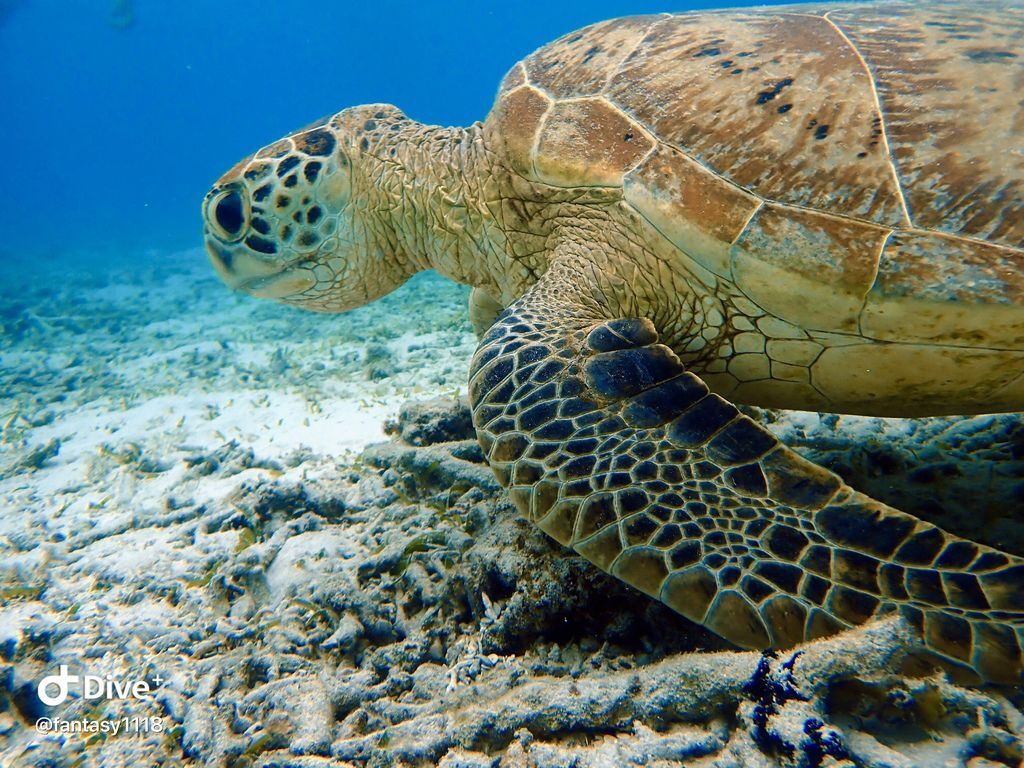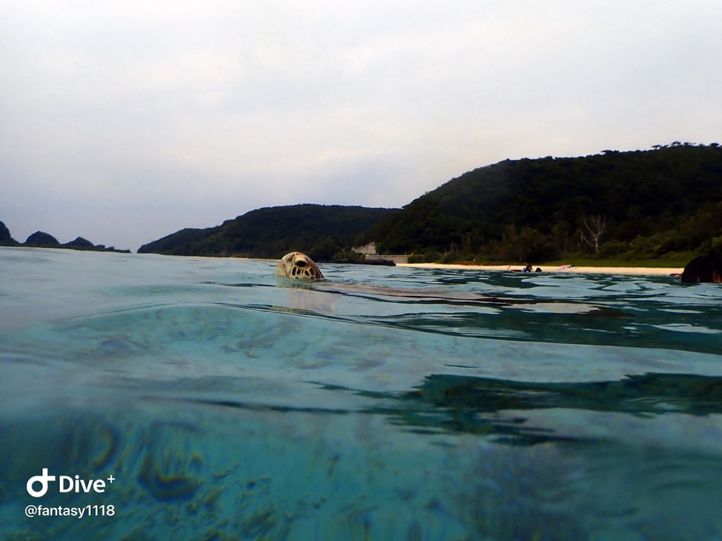 剛好碰到他要換氣,在沖繩一樣不要去摸海龜喔,雖然我不知道沖繩是罰多少錢。