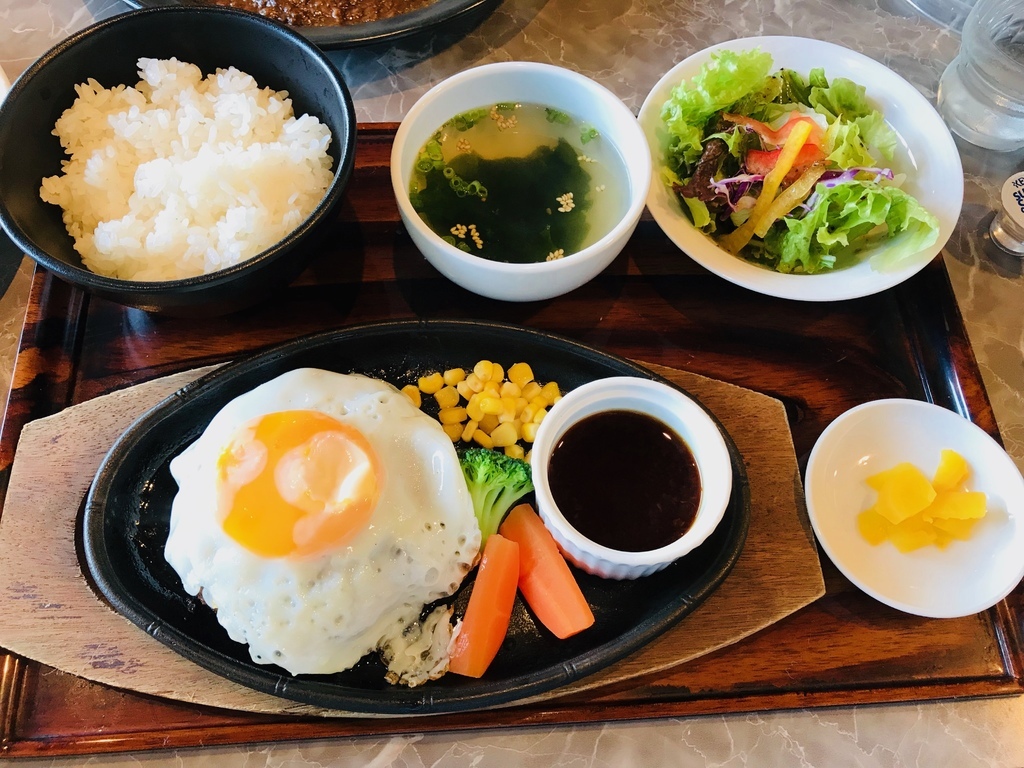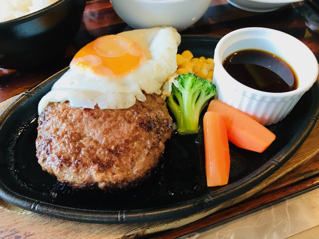 我在日本吃到的漢堡排都是柔軟多汁,肉厚又香,怎麼可以那麼好吃!可能是和牛絞肉做的漢堡排。