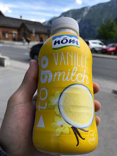 睡飽飽吃完旅館的自助早餐後,坐公車前往哈修塔特小鎮,準備前往今天的重頭戲-鹽礦之旅。下公車後先去對面的超市逛逛,因為前一天晚上關門了沒逛到,看看有什麼好買的,看到一罐香草牛奶,覺得超特別的就買下去!很像台灣光泉的富維他牛奶,其實蠻好喝的出國最喜歡找些沒見過的食物。