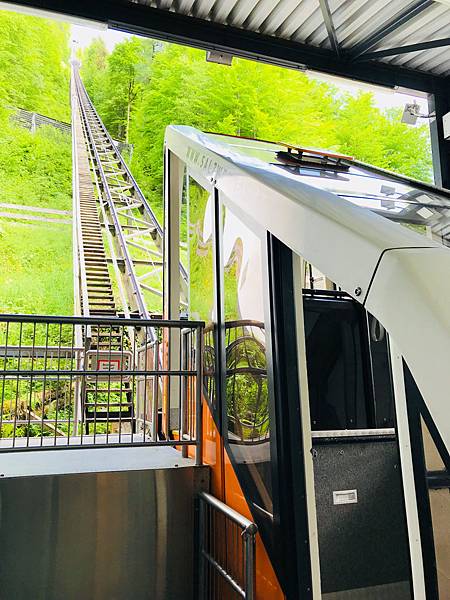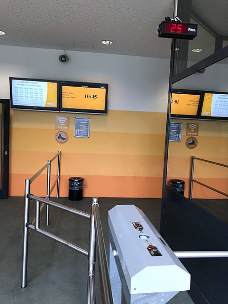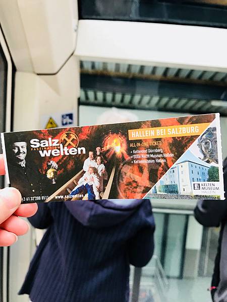 OK,我們刷票進入準備搭纜車,票務必收好喔,因為上去參觀鹽礦跟坐纜車下山都要票,票沒了就得重買了,小朋友的票媽媽記得收起來。