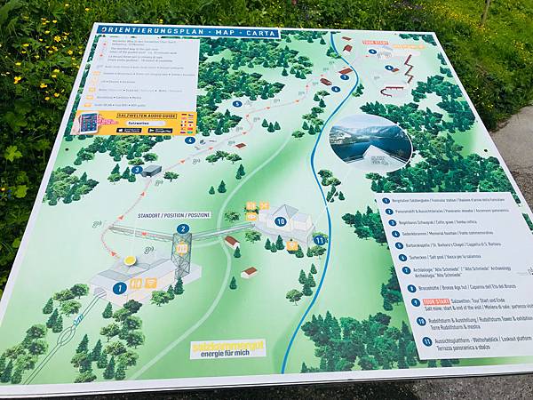 到了之後你有兩個選擇,看要先去天空步道觀景台(天空步道在地圖上的號碼11)。還是要直接往上走去參加鹽礦之旅,鹽礦的入口在地圖的右上方,也只有一條路,不用擔心,往上走就會到了。香吉士是建議如果晴空萬里天氣很好,務必先去天空步道拍照,因為山區的天氣說變就變,趁好天氣先去拍照吧!鹽礦參觀在洞穴內所以天氣如何都無所謂的。