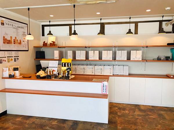 在我旅途的倒數第二天,從北部要回那霸還車的路上,我們又經過了北谷的這家吐司店,這時大概12點左右,想說再去買買看吧。進門後直奔櫃台半條的已完售,聽說半條的一天只有30份,但沒關係還有一條的可以買,只要能吃到都好,櫃台後滿滿的都是預約的訂單,我們也沒想要買很多,畢竟還沒吃過,就買了一條來嚐鮮。