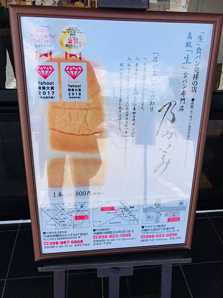 這次海炎祭結束後我們住在了美國村的北谷la'gent飯店,查到了北谷店的吐司離我住的飯店超近,走路就可以到的距離,那天一早跑去吃了飯糰,吃飽後我們應該要先去買吐司的阿!我錯了,我忘了吐司這件事,就開始逛起了美國村,逛完的時候才想到這時已經下午三點了,立馬開了車過去,售完兩字大大的擺在了店門前...也沒辦法,買不到就算了!這樣下次也還有再來的理由,你說是吧?哈!話說北谷店上面的廣告看板也太誘人了吧讓人不得不多看他兩眼,雖然我沒什麼興趣啦!